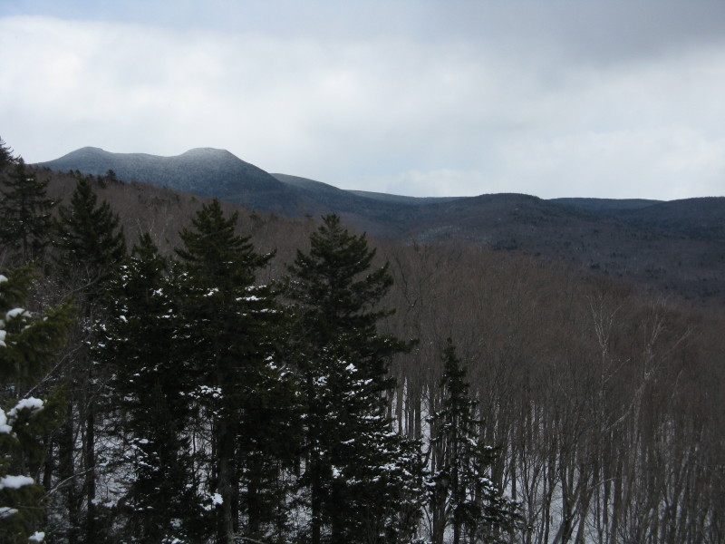To the SW, Mt. Tecumseh rose behind a portion of the Mad River valley traversed by the Greeley Ponds Trail.