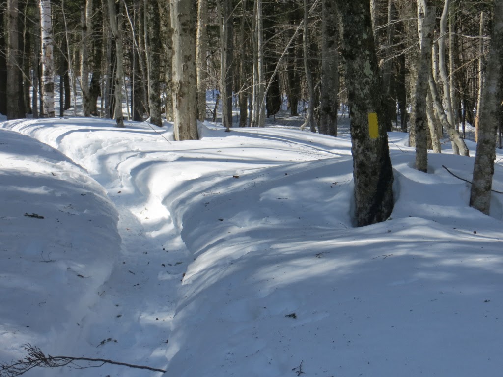 There was quite a bit of drifting along sections of the trail. Barebooters beware! Some undrifted parts of the track had been chewed up by barebooters before the winds came from the recent off-coast Nor'easter.