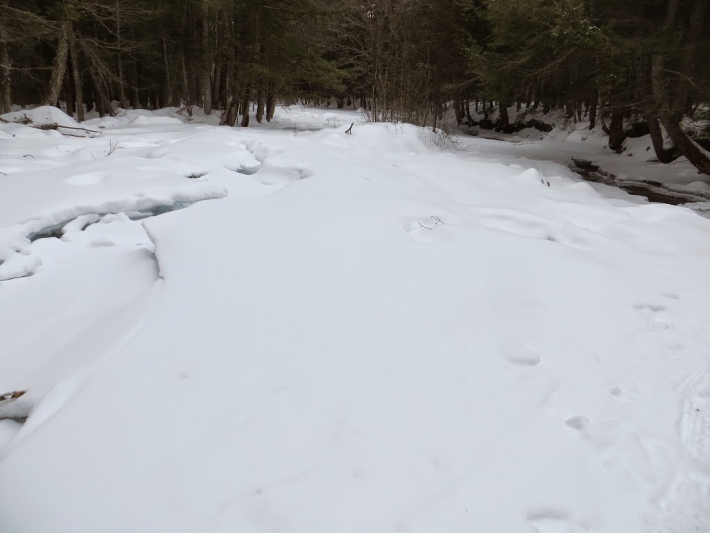 The Downes Brook crossing on the Mt. Potash Trail was solidly buried.