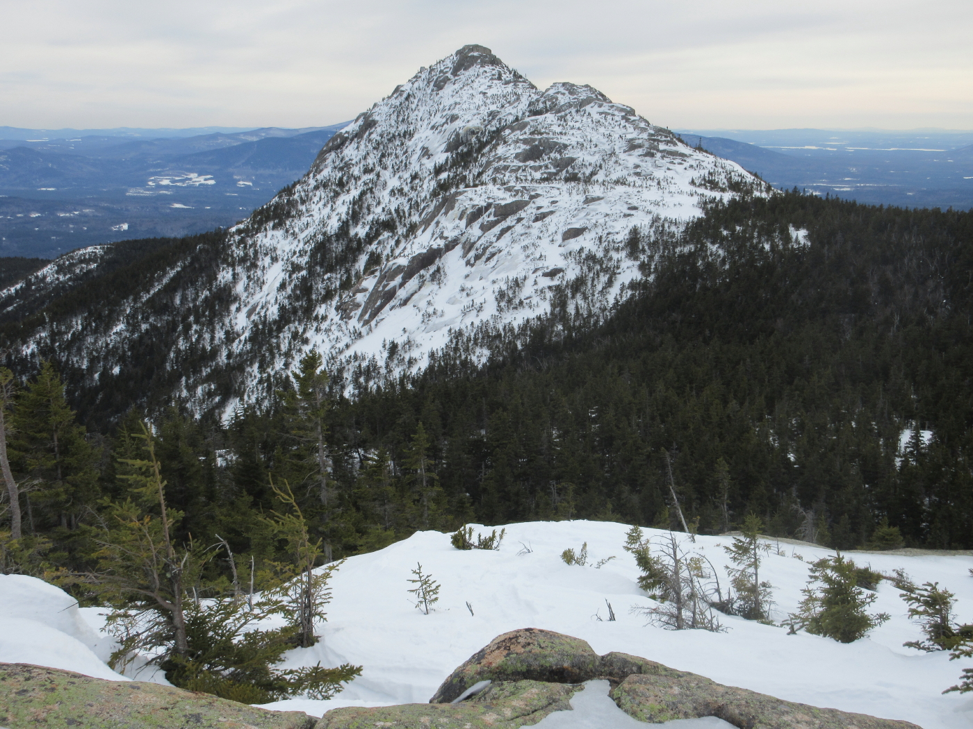 It was a good day for views up on the ridge of Mt. Chocorua! I Microspiked up the familiar Champney Falls Trail, went partway up the cone of Mt. Chocorua until it got icy, then snowshoed up to First Sister and took in the 90-mile vistas for an hour and a half.