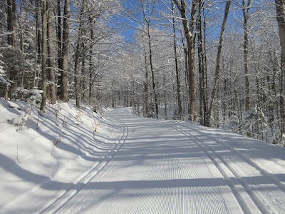 The thaws and refreezes have set up a solid snowpack in the woods.
