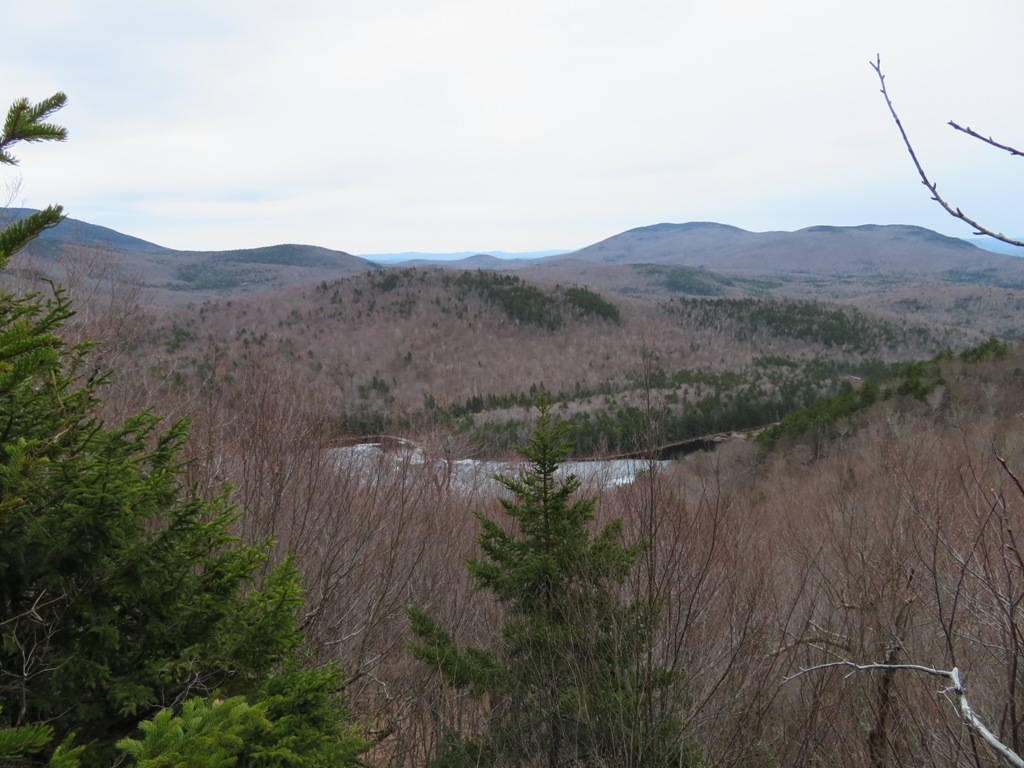 A tiny viewpoint overlooks the Sandwich Notch area, with Upper Hall Pond below, still partly frozen.