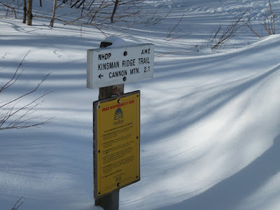 On a day projected to hit 40 degrees in the valleys, higher elevation and a trail out of the sun promised the best snow conditions. That proved to be the case on the Kinsman Ridge Trail to Cannon Mountain, a relatively short but relentless climb.