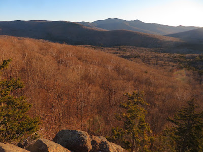 Most of the moderately graded climb (1250 ft. total elevation gain) is through hardwood forest. Stabilicers (remember them?) worked well on the shallow packed snow on this ice-free trail.