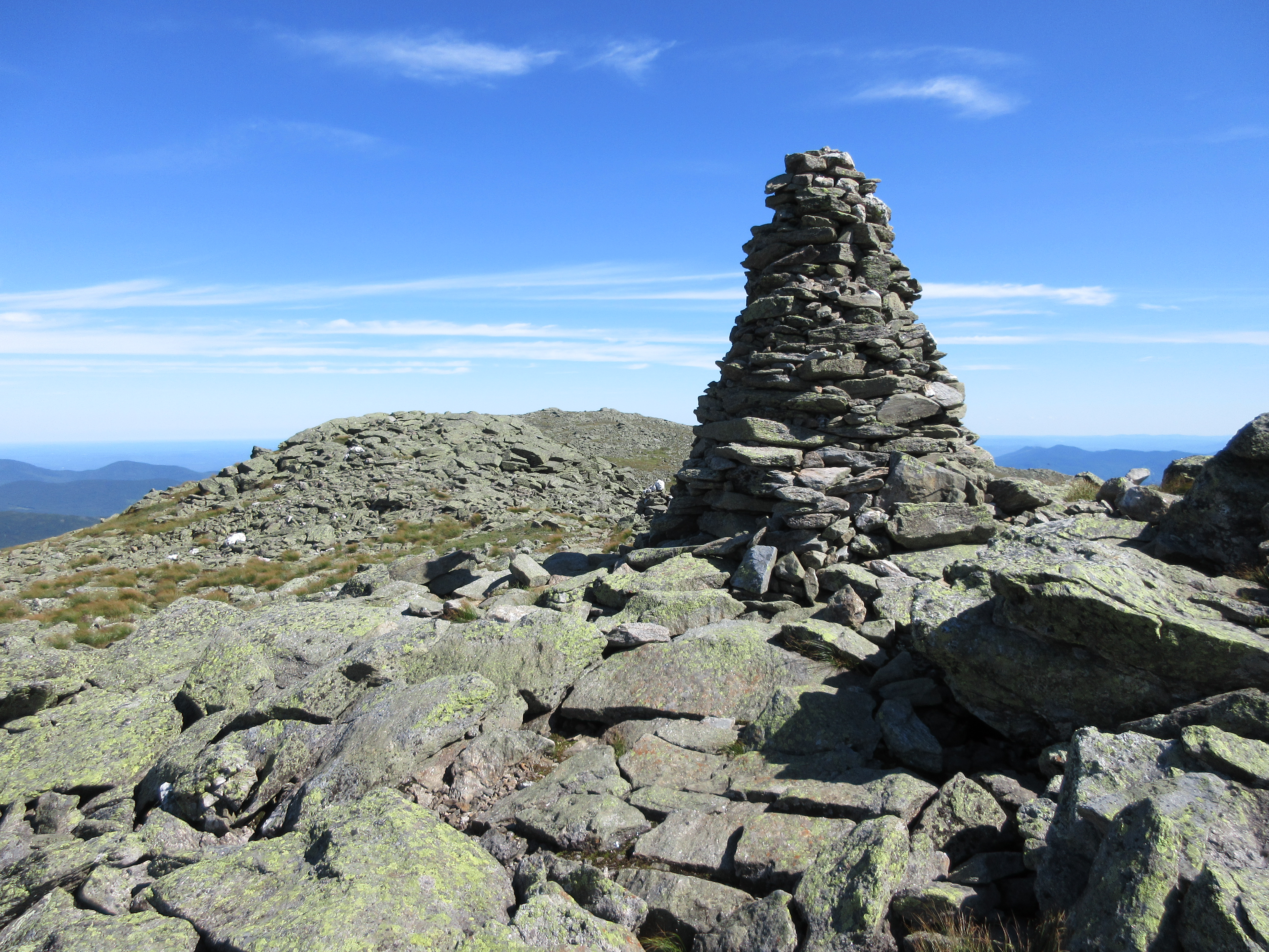 The summit ledges of Boott Spur (5500 ft.), reached by an easy scramble on bare rock from the Boott Spur Trail just before it meets Davis Path.