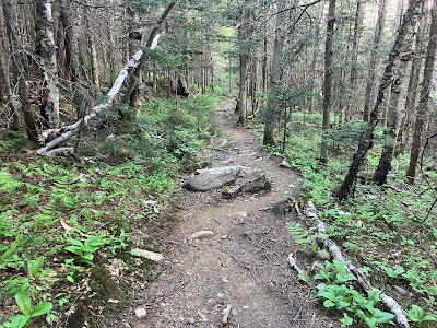 After a rocky climb, there is a gentle walk through boreal forest along the west side of Mount Blue.