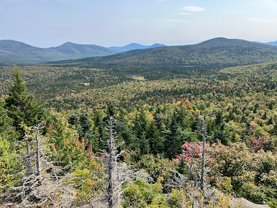 I had a craving for a helping of Wild River Wilderness. With the Wild River Road approach from the north closed due to storm damage, the best option was to hike in from the south off Carter Notch Road out of Jackson. My objective was a ledgy 3132-ft. knob on the east side of Carter Dome, which from previous visits I knew had sweeping views of the peaks around the upper Wild River Valley. From experience I realized the bushwhacking would be tedious at times due to extensive brush. In addition to the views, the rewards would include the supreme sense of isolation out there, and the birch glades that go on forever.