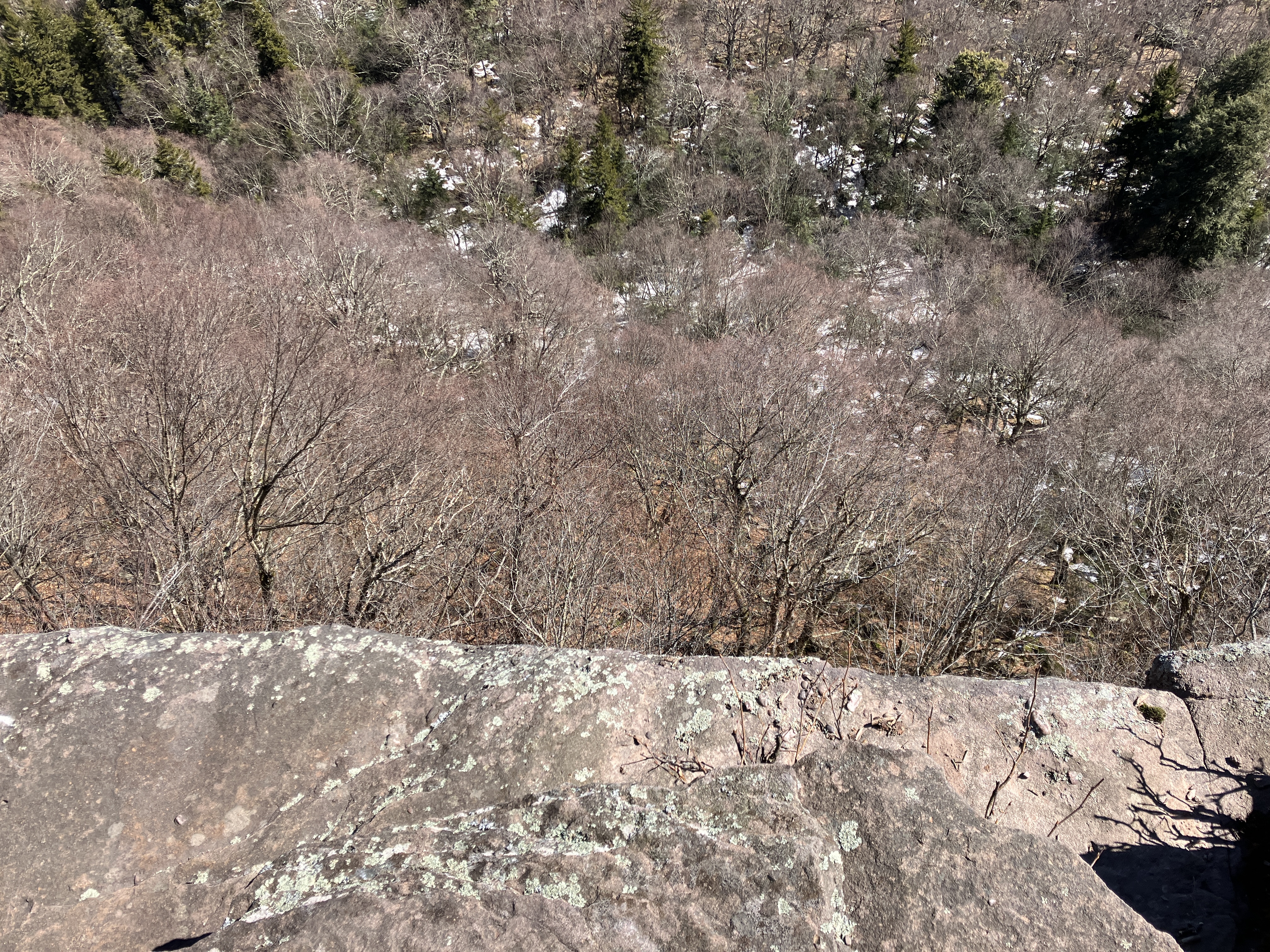 Peering down into the valley of Panther Kill, a stream that flows eastward off the mountain.