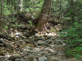 As often happens when bushwhacking along a brook, frequent crossing is required to bypass steep banks.